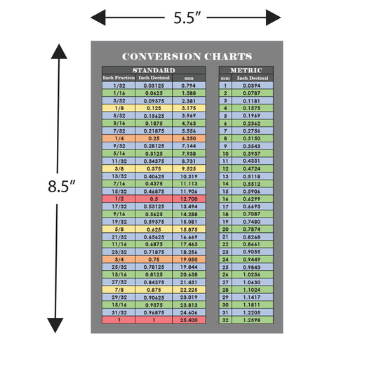 Fraction and Decimal to Metric Conversion Chart Magnet